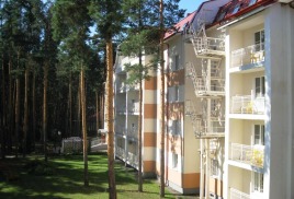 Размещение: Два спальных корпуса без лифта, основной 3-х этажный корпус и новый 5-ти этажный, соединены между собой теплыми переходами. Столовая и лечебные кабинеты расположены на 1 этаже.